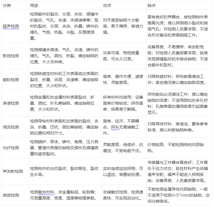 常用無損檢測技術(shù)的分類及優(yōu)缺點